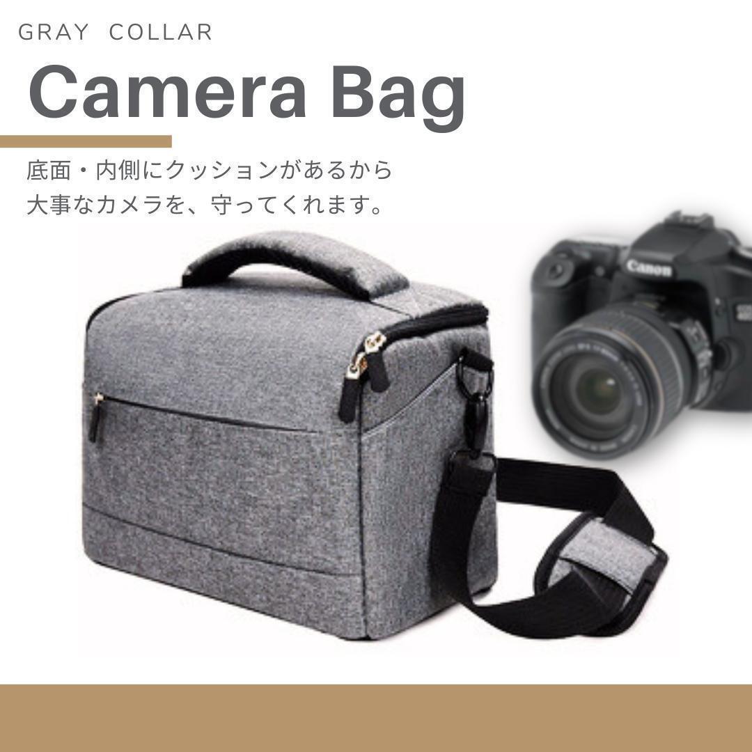 - カメラバッグ ショルダーバッグ グレー 一眼レフ 収納バッグ 旅行 厚手 仕切り