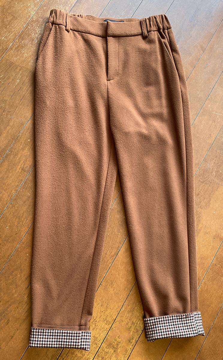 - パラディテール 裾チェック 起毛パンツ 36サイズ テラコッタ レンガ色 ストレッチ素材 日本製 メルベイユアッシュ ユノートル 細身パンツ