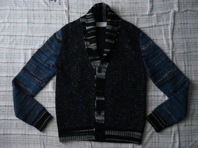 - lot holon★ショールカラー切替ウールカーディガン セーター シルクアルパカ混
