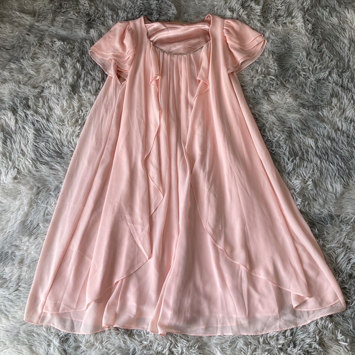 - kanabell 背中レースネックビジューシフォンドレスワンピースピンクM☆美品45