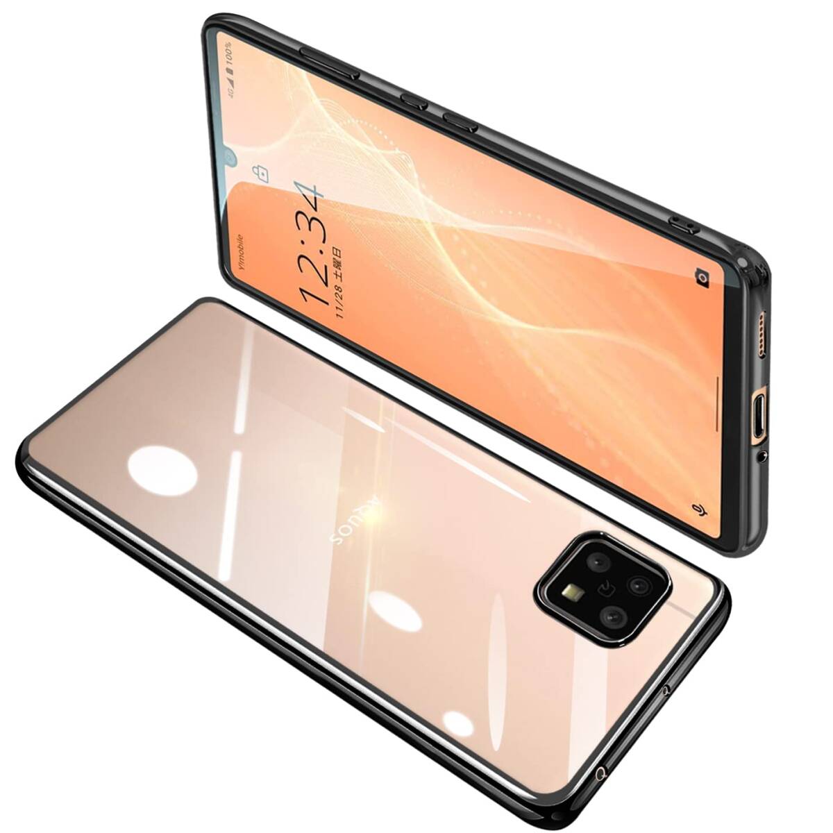 - 軽薄 ストラップホール付き 耐久 薄型 TPU メッキ加工 軽量 耐衝撃 全面保護 スマホケース 透明 sense5G 携帯便利(