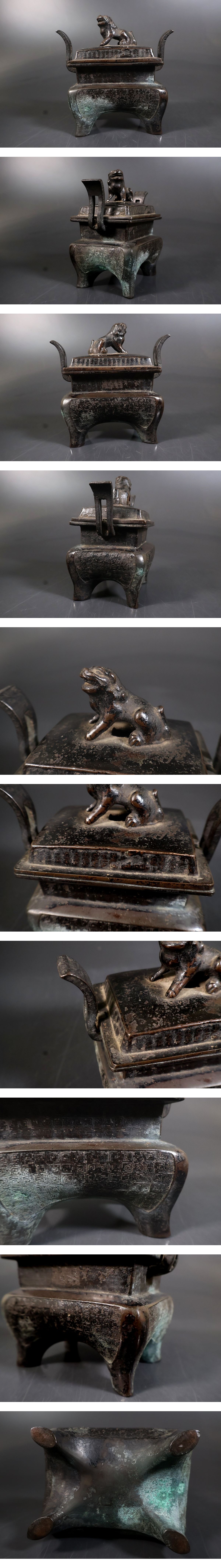 - 【小】5315 中国古美術 唐物 古銅耳付雷紋獅子香炉 古銅香炉 明時代 古玩
