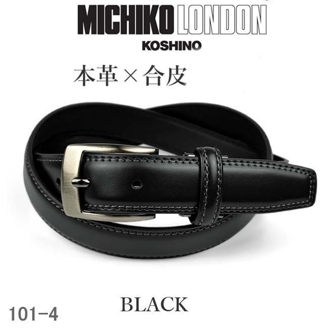 - ブラック 101-4 ミチコロンドン リアルレザー ダブルステッチ ベルト