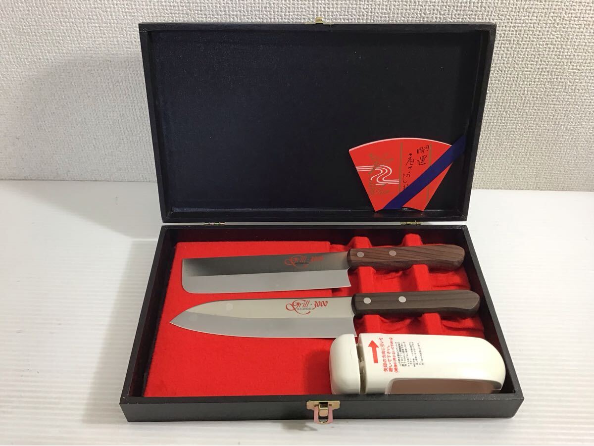 - 未使用? 特選御料理包丁 開運包丁 Grill-3000 2本セット 研ぎ器付 三徳包丁 菜切包丁 ステンレス 調理道具