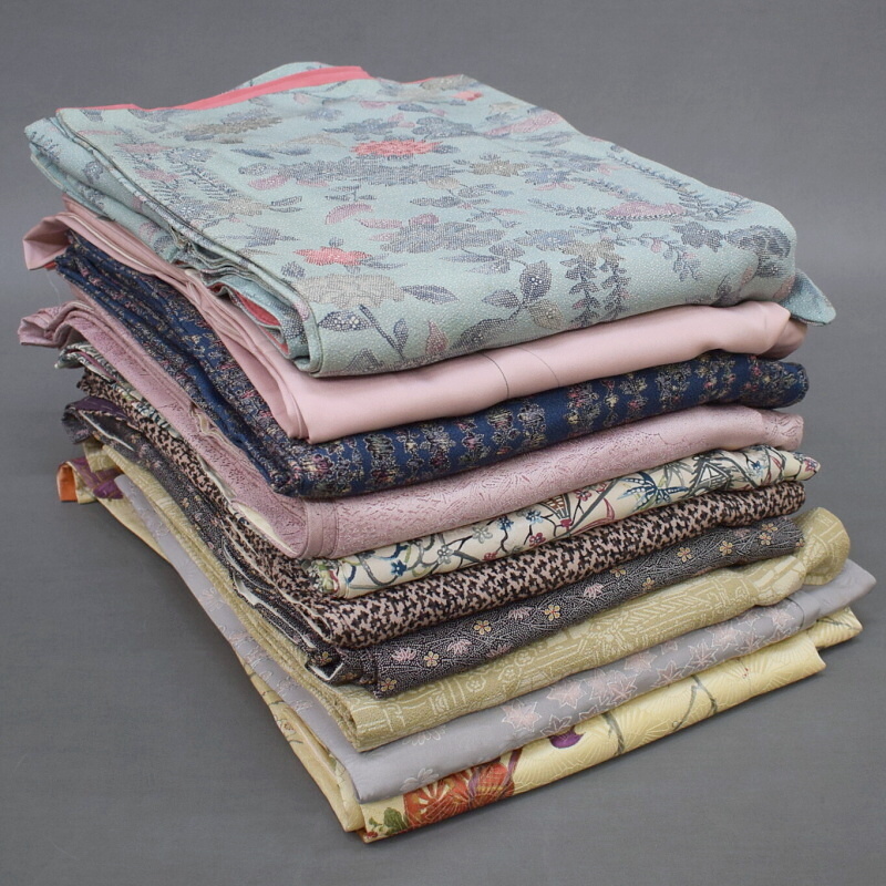 > B17-2【凛々】中古品 正絹 小紋の着物 10点組 まとめ売り ★着用 リメイク材料にも ②