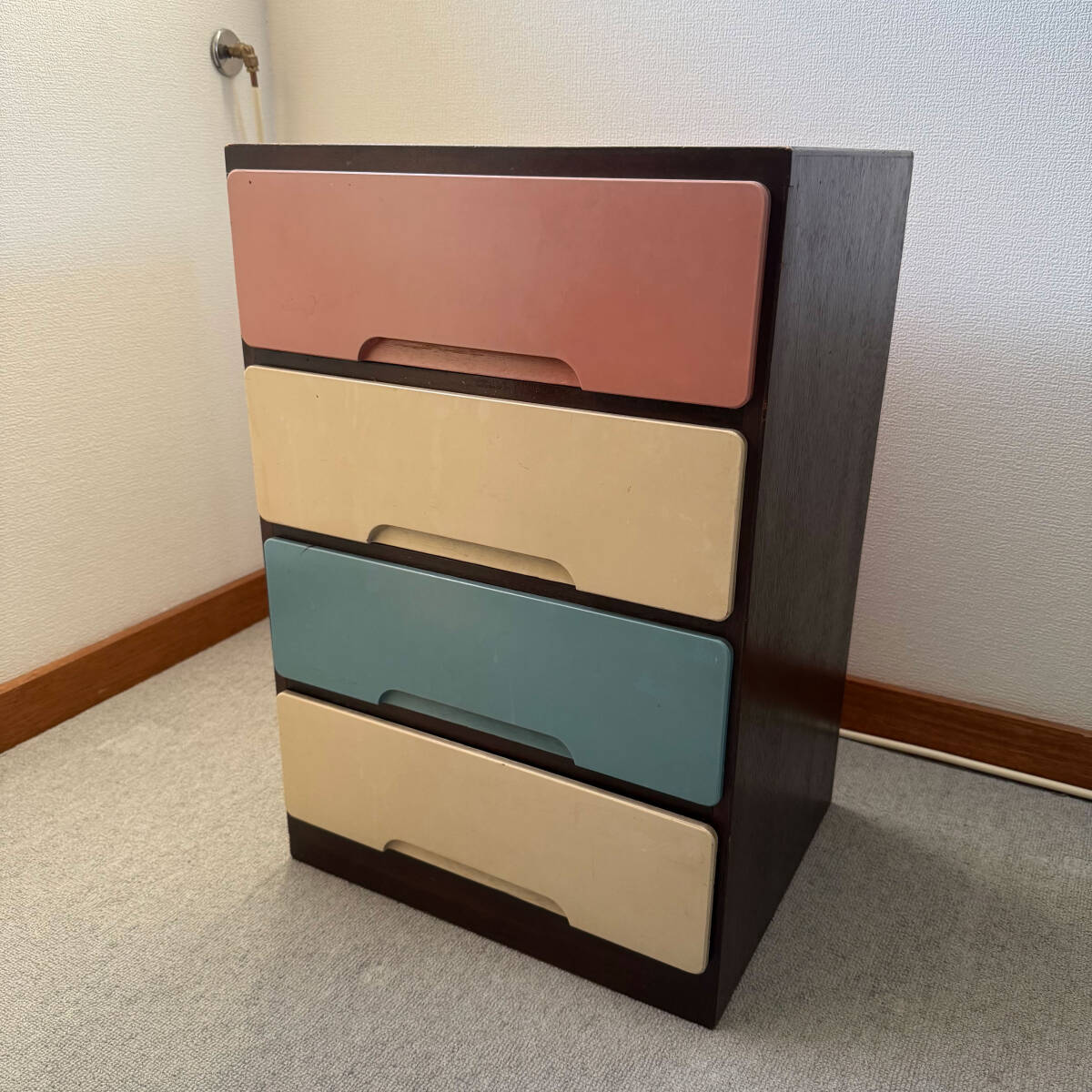 - T7-1368 レトロ 4段引出し タンス チェスト レトロポップ 札幌市手渡し歓迎
