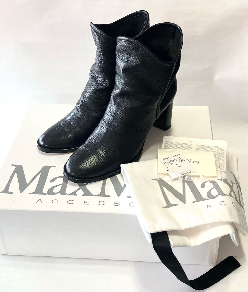 - マックスマーラ MaxMara BLY やぎ革 ショートブーツ ブラック レザー 36 1/2 数回使用