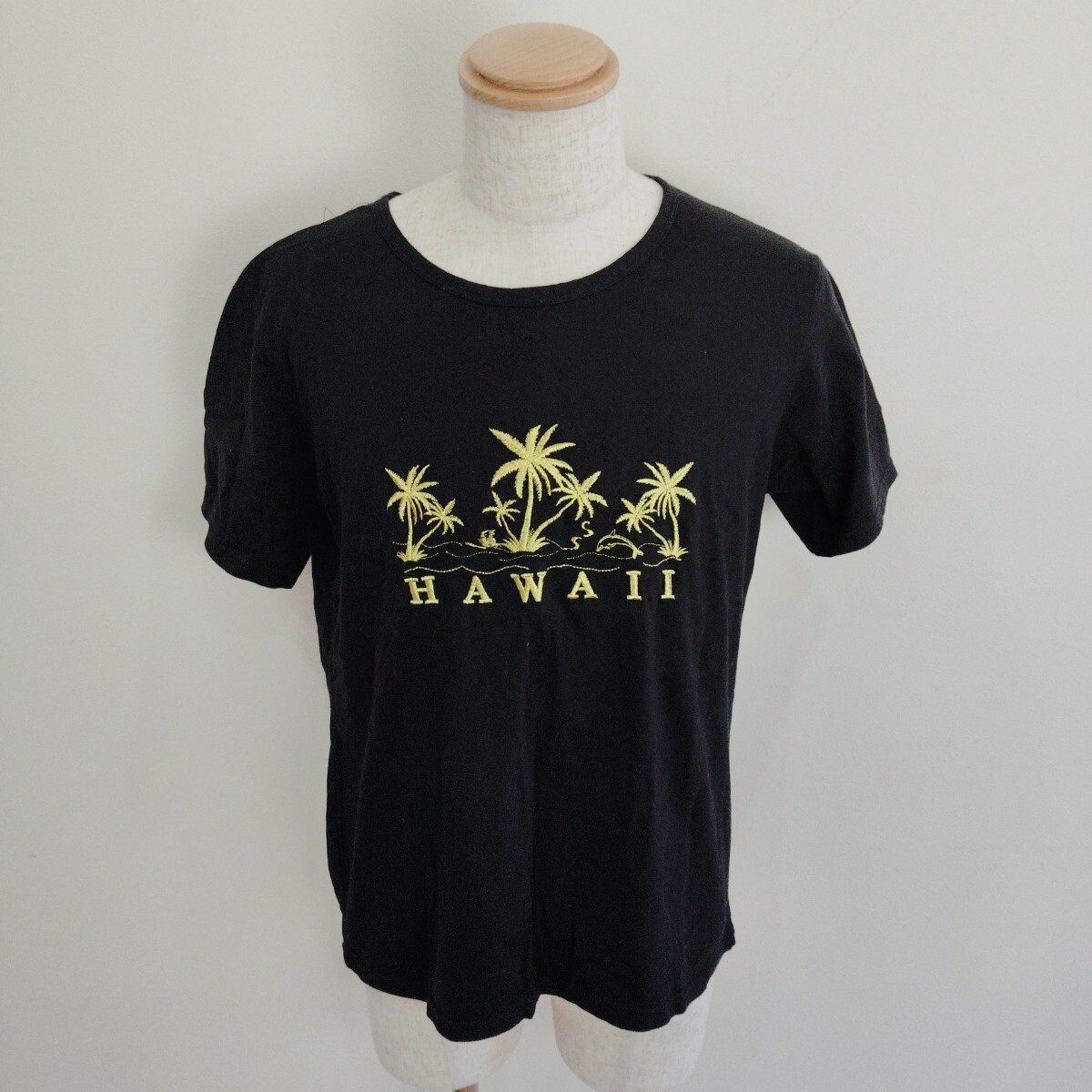 - 0924/L/Favant メンズ 半袖Tシャツ カットソー ハワイ 刺繍 黒