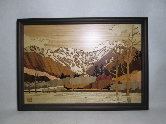 - <ならまち>■ウッド・アート「穂高連山と大正池」片山昭枝 造■検)アトリエやしろマケターリー風景画
