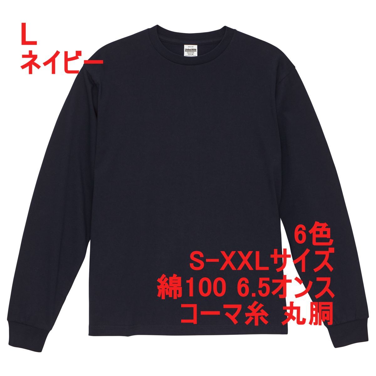 - Tシャツ L ネイビー 長袖 厚手 特厚 6.5オンス 綿100% 袖リブ 2.1インチ 無地 無地T ロンT 定番 丸首 クルーネック A2158 紺 紺色 111101