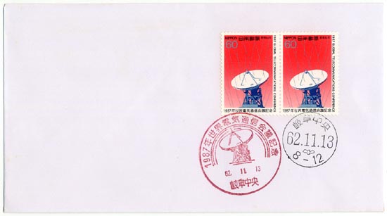 - ★白封FDC特印付-4:1987 世界電気通信会議記念 2連★(16.06.14)