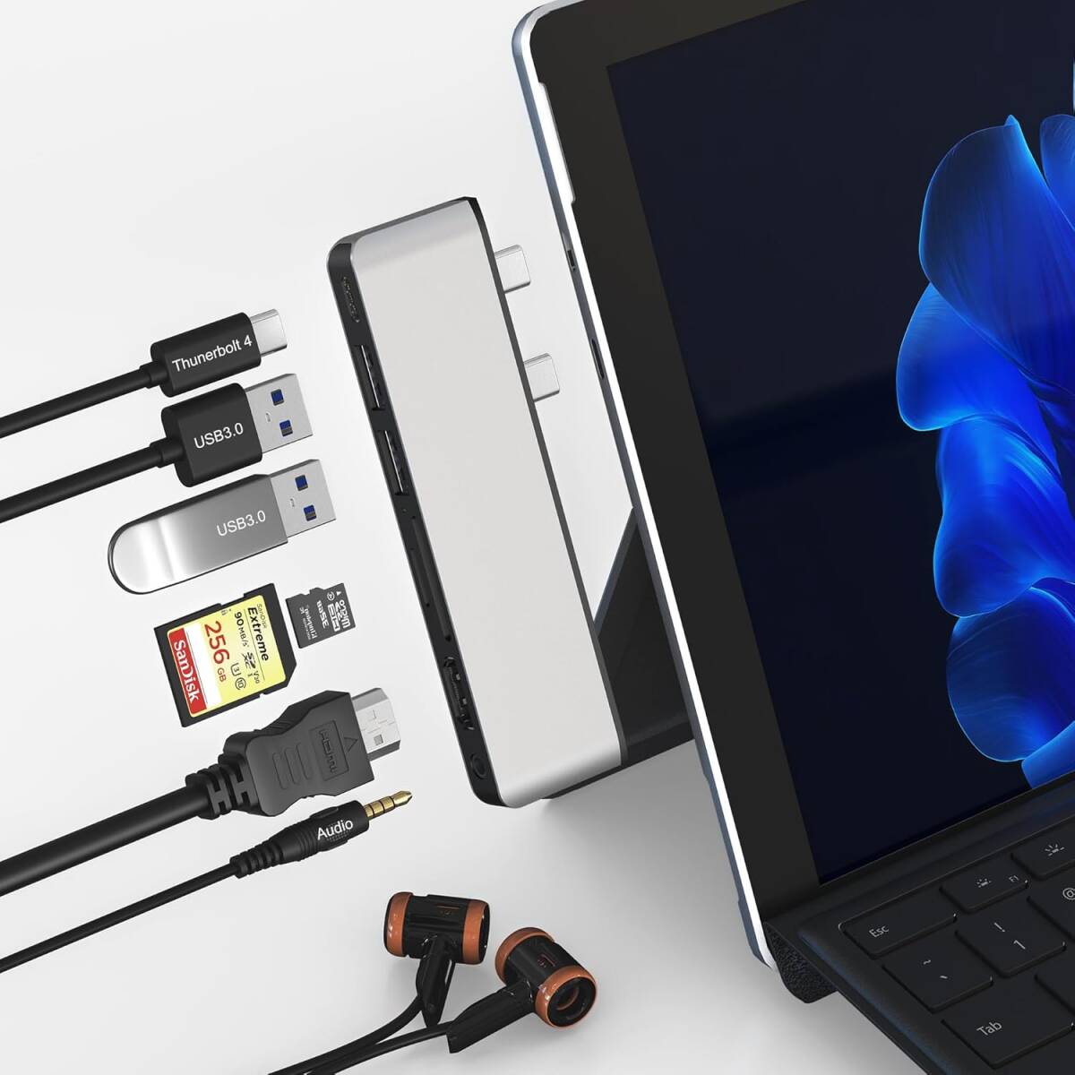- Surface Pro 11/10/9/X ハブ 4K HDMI対応 | USB-C Thunderbolt 4 | 2×USB3.0ポート | SD/TFカードリーダー | トリプルディスプレイ対応