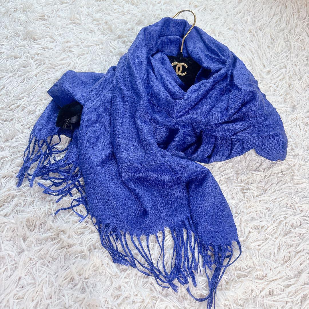 > 美品 ストールショール ブルー 大判 無地 通勤 オフィスカジュアル 上品 高級感 ヴィンテージ ビンテージ オールシーズン レディース