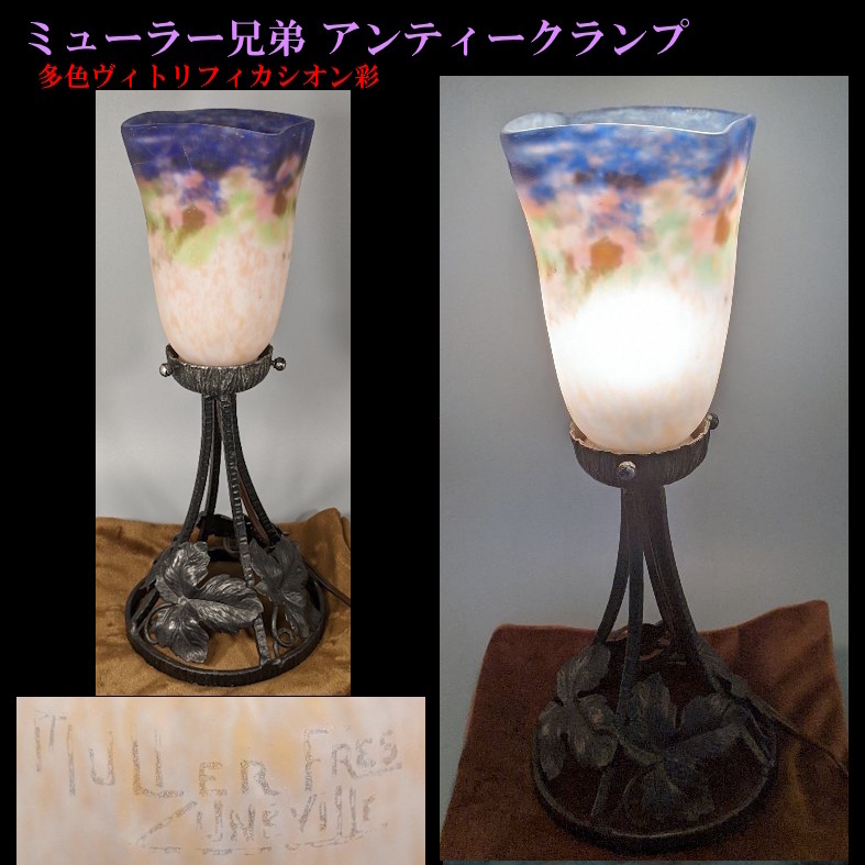 - ◆早い者勝ちです!お買い得品/点灯可能★多色ヴィトリフィカシオン彩◆ミューラー兄弟アンティークランプ★葡萄の葉◆シュナイダー期照明