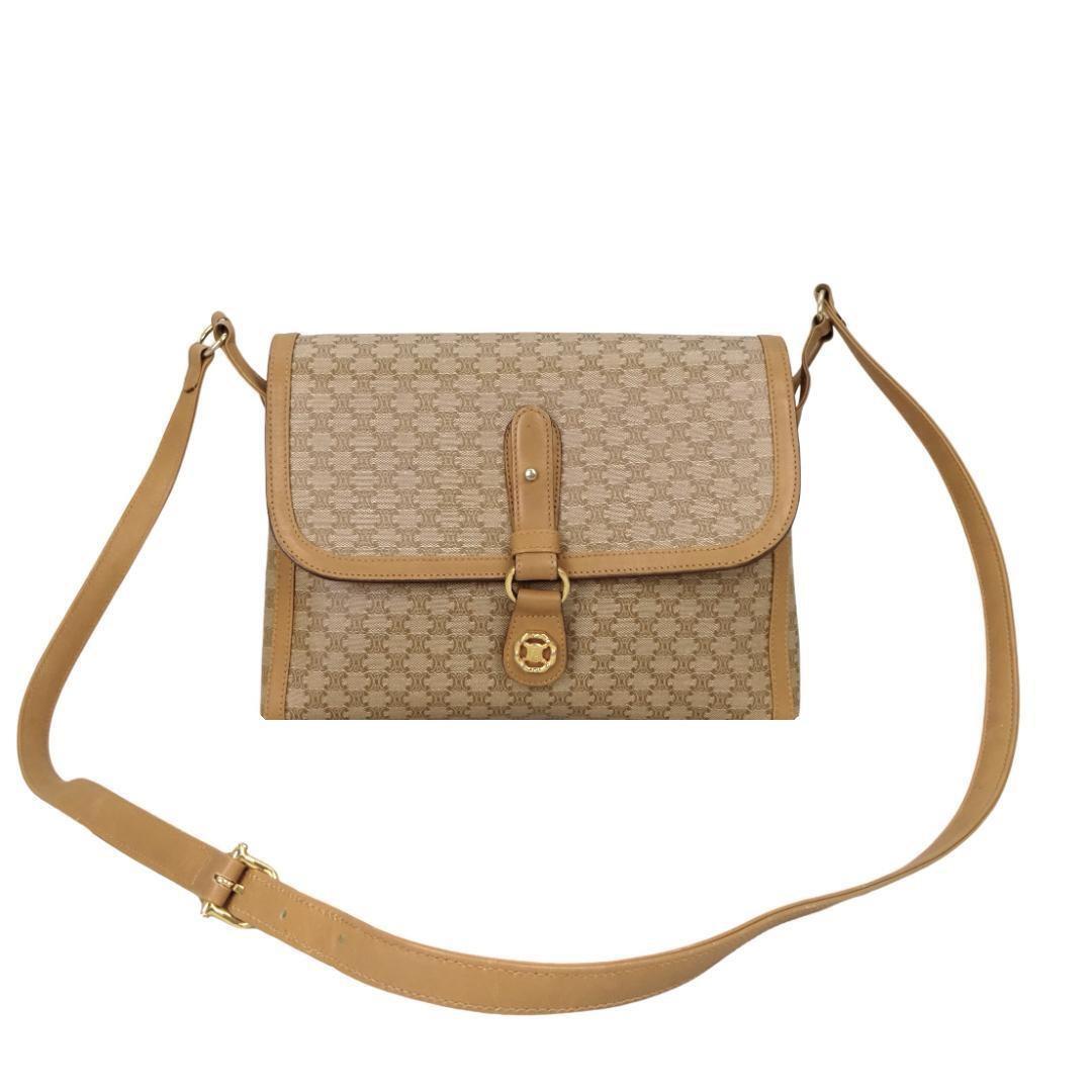 > 本物 良品■セリーヌ■マカダム ベージュ PVC キャンバス ゴールド 斜めがけ ショルダーバッグ