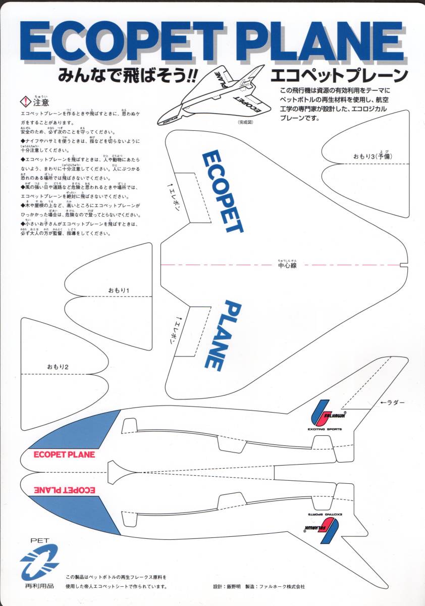 - 送料無料!!ペーパークラフト・よく飛ぶ紙飛行機「エコペットプレーン」設計飯野明 A4サイズ