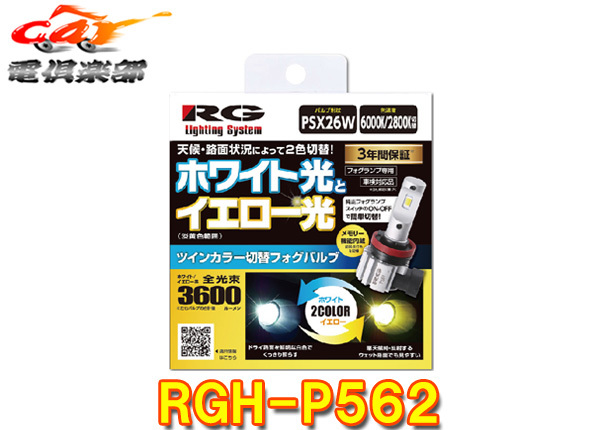 > 【取寄商品】RGレーシングギアRGH-P562ツインカラー切替LEDフォグバルブ/PSX26W/6000K(ホワイト)⇔2800K(イエロー)切替/3600lm/12V車検対応