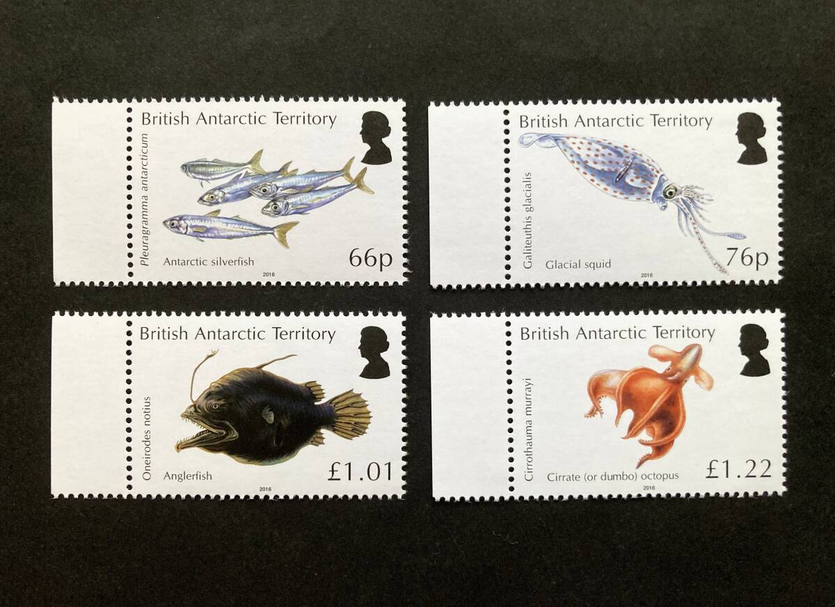 - 外国切手: イギリス領南極地域切手「南極海域」(コオリイワシ ほか)4種完 未使用