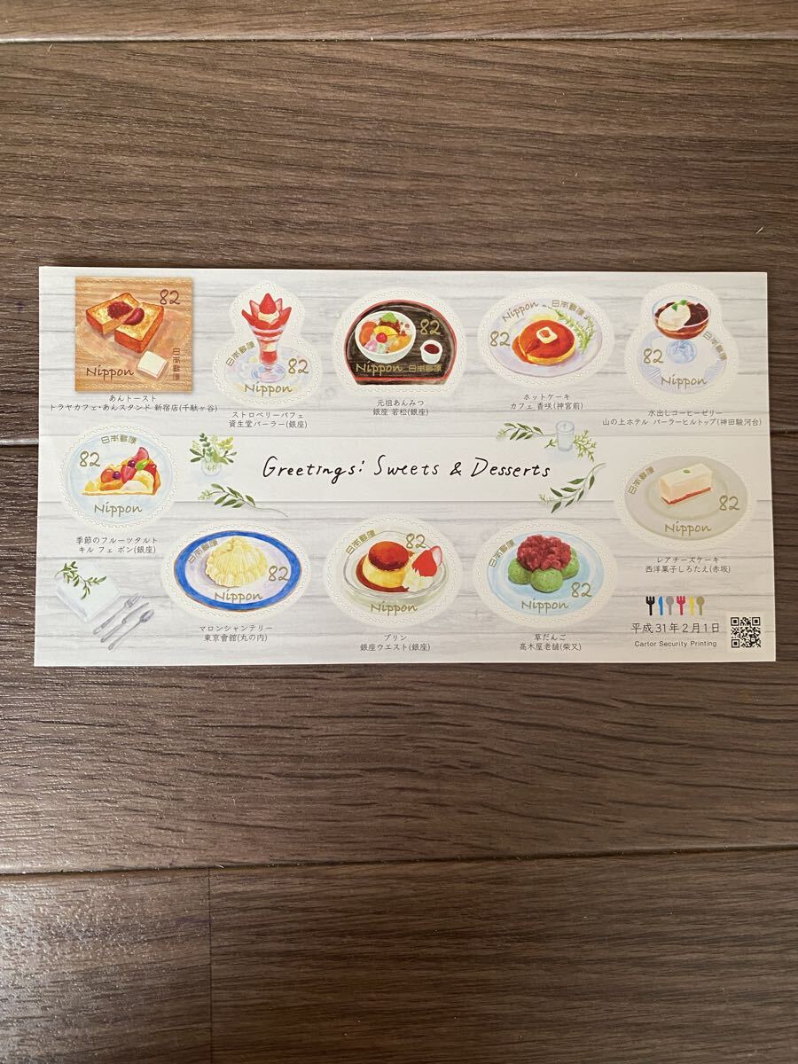 - 未使用 グリーティング切手 デザート スイーツ おいしいにっぽん シール切手 記念切手 切手シート 日本切手 和菓子 洋菓子