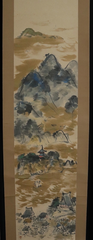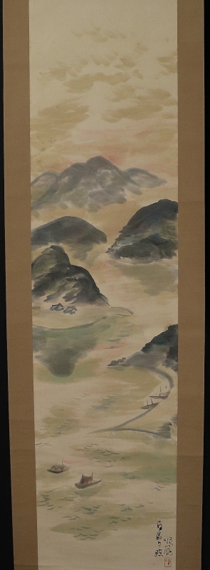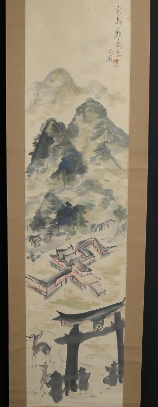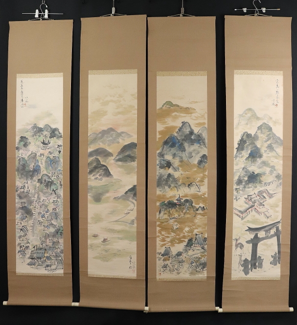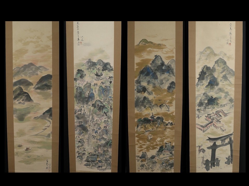 - 10833■【真作】三宅順風 四幅対 広島名所山水図 宮島 厳島 肉筆 掛軸 岡山の人