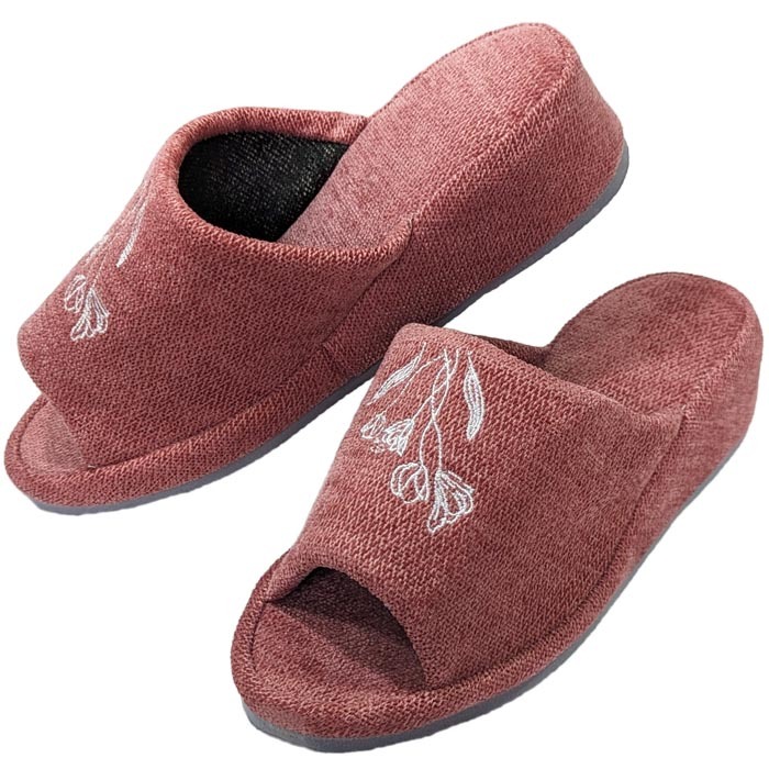 - ヒール スリッパ 花柄 刺繍 ピンク ヒール高4.5cm 室内履き ヒールアップスリッパ 美脚スリッパ ポイント利用 ポイント 消化