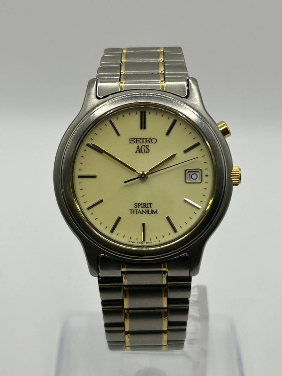 - ◎【腕時計】SEIKO セイコー AGS 5M22-7B50 カレンダー デイト クォーツ式 電池 シンプル デザイン 文字盤 カラー 銀