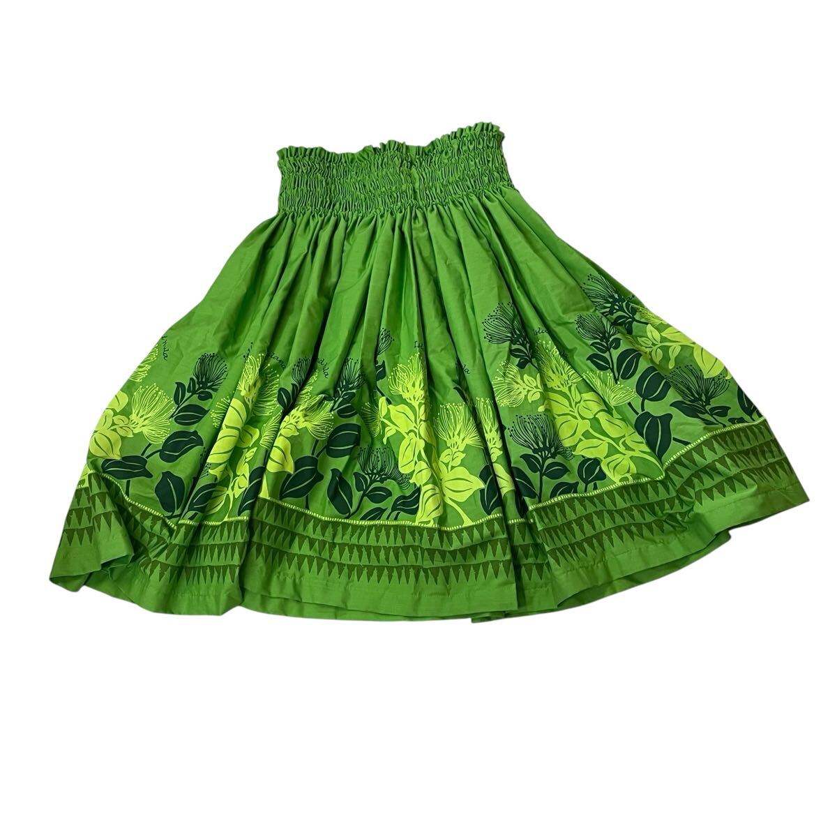 - 【中古】ハワイアンファクトリー パウスカート フラダンス衣装 丈70cm グリーン系×リーフ柄 長期保管品◆L94-099