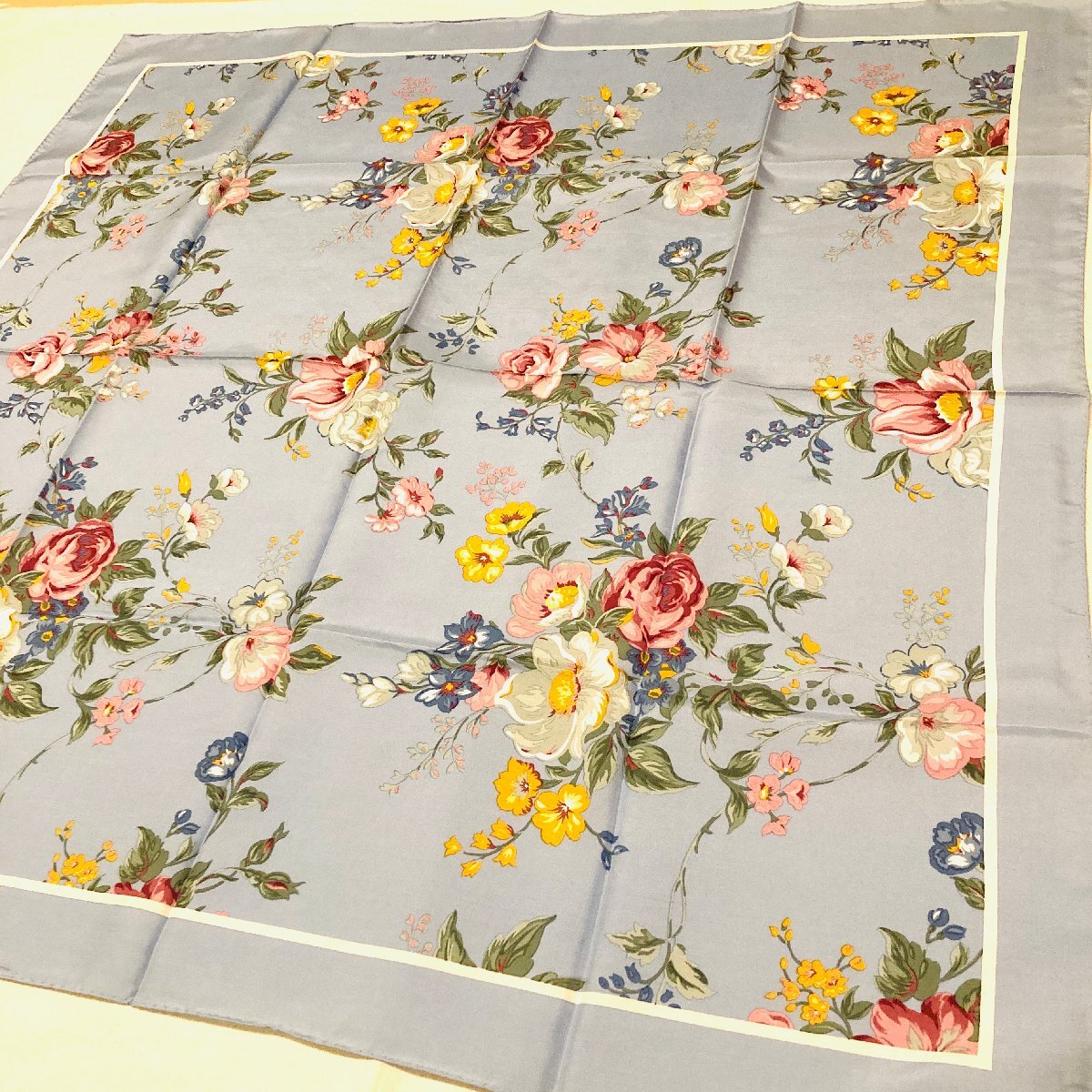 > 美品 Polo Ralph Lauren ラルフローレン 絹 シルク/SILK 100% 大判 スカーフ ライトブルー/水色 花柄 タグあり 88 × 88cm