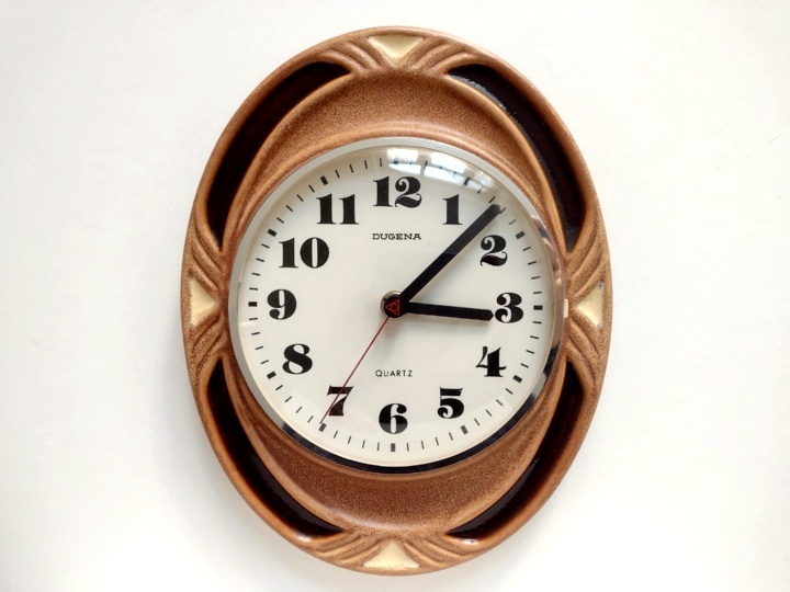 - ●○ドイツ製 陶器の壁掛け時計 楕円形 茶系 DUGENA○●アナログウォールクロックレトロビンテージアンティークインテリア IN820