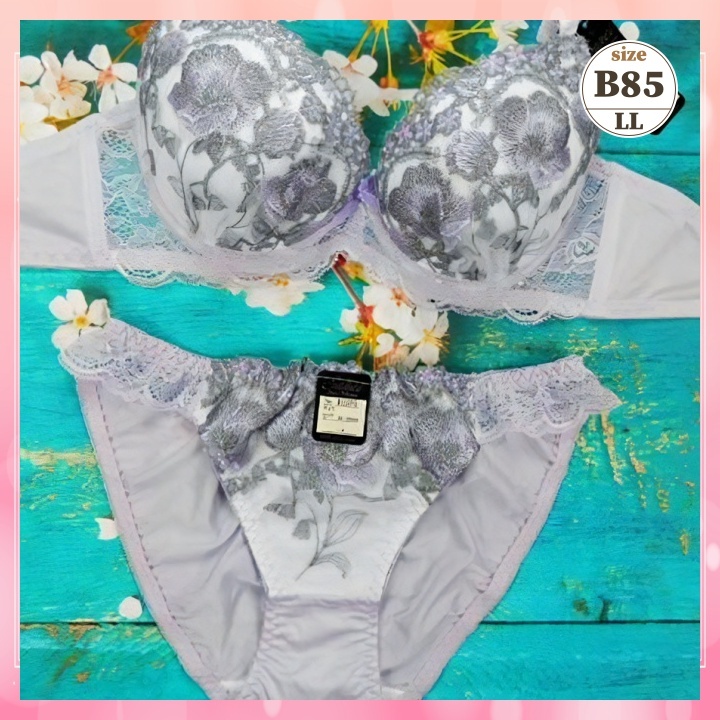 > Zb8553◆新品 ブラショーツセット【B85/LL】下着 ランジェリー 蒸れ軽減 穴あきカップ 通気抜群 パンジー 紫系