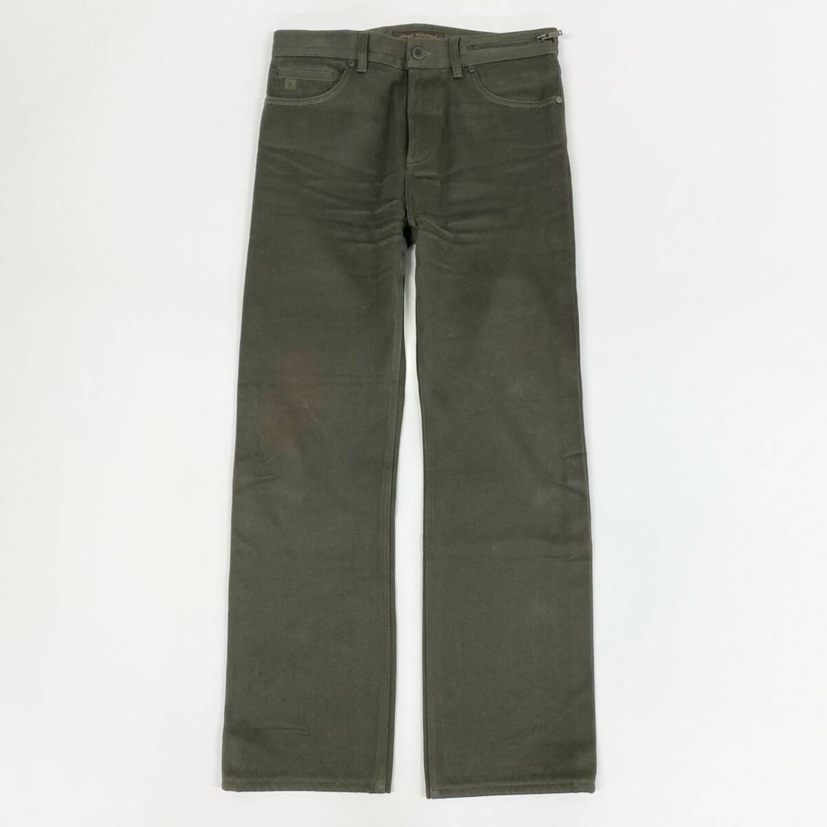 - 12i26《美品》LOUIS VUITTON ルイヴィトン ストレートパンツ ボトムス LVロゴ刺繍 コットン M相当 カーキ メンズk02i