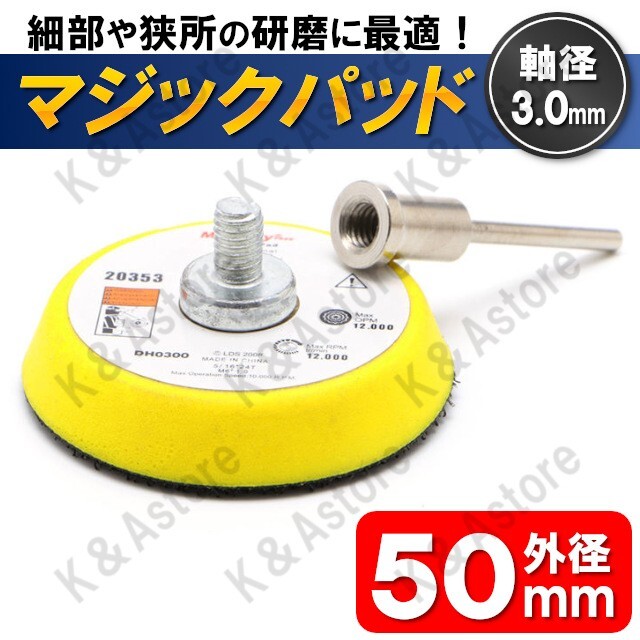 - 電動ドリル用 マジックパッド 50mm 軸付き 軸径3mm サンダーパッド サンドペーパー用 マジック式 研磨パッド 研磨ディスク 回転工具対応