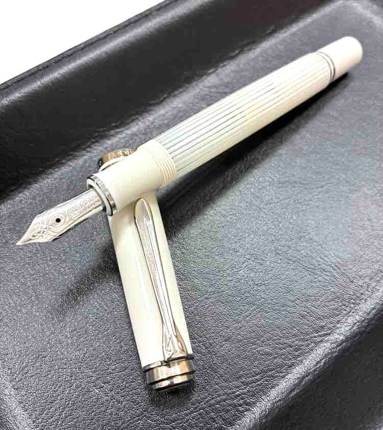 - (SN1658)Pelikan ペリカン 万年筆 スーベレーン M605 ホワイトストライプ 14C-585 EF 洗浄済 筆記具 筆記未確認