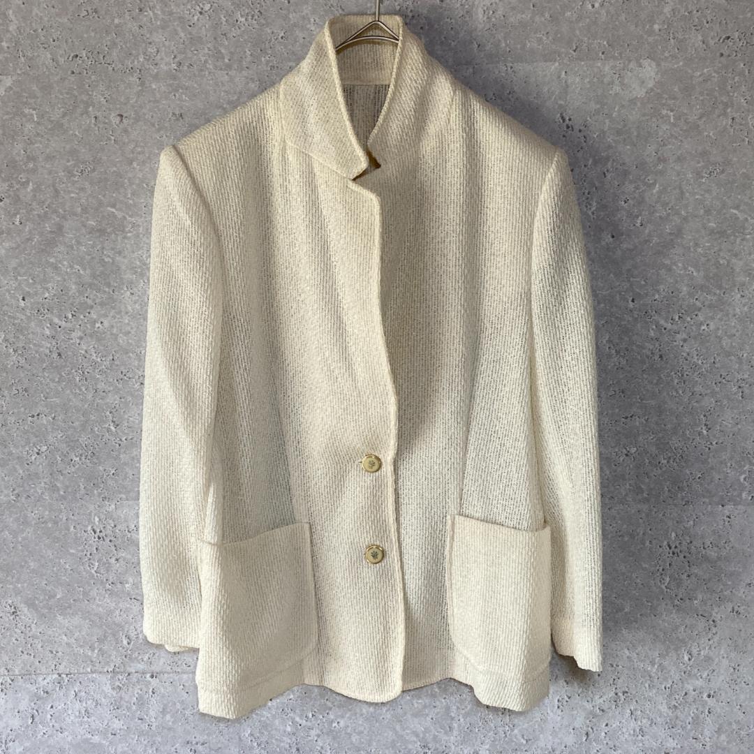 - LAS FINE(9)ツイードジャケット*薄手*春夏秋*日本製*飾りボタン*白系