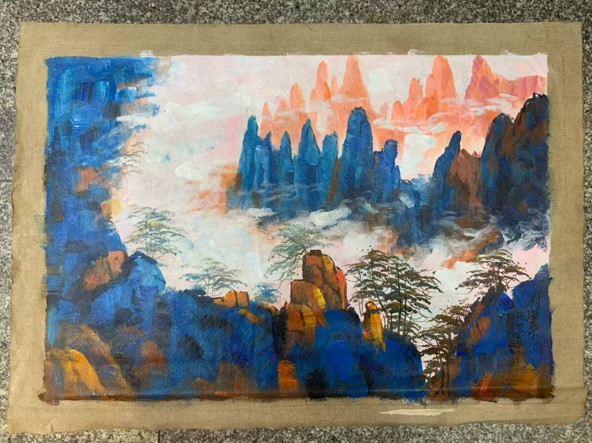 - 油彩 絵画 早期收集 y 劉海栗 風景 山水畫 】手描き布油絵 油畫 旧藏 中国古画 純手描き画 古美術品 時代物 中国古玩 骨董品 925