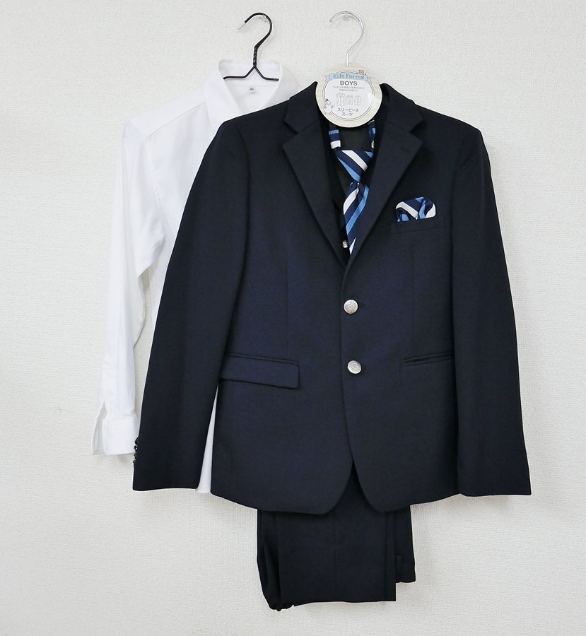 > WANDER FACTORY キッズ スリーピース (ネイビー) + 白シャツ サイズ160A キッズホーマル キッズスーツ