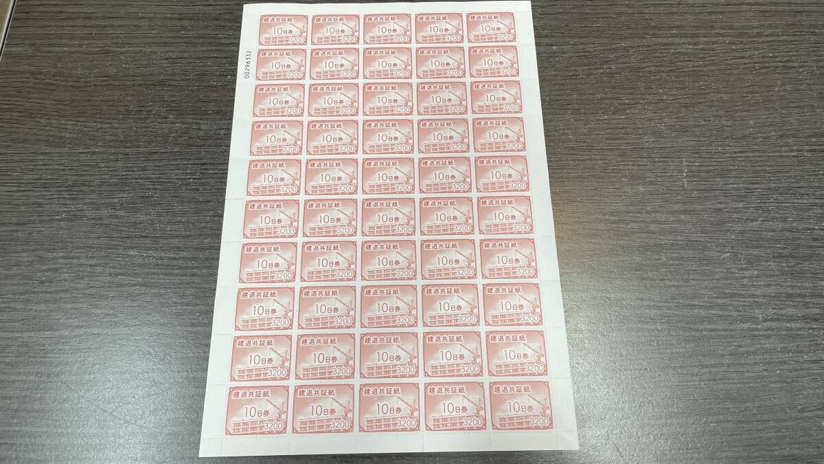 - ◎建退共証紙 赤証紙 10日券 3200円×50枚 合計160000円