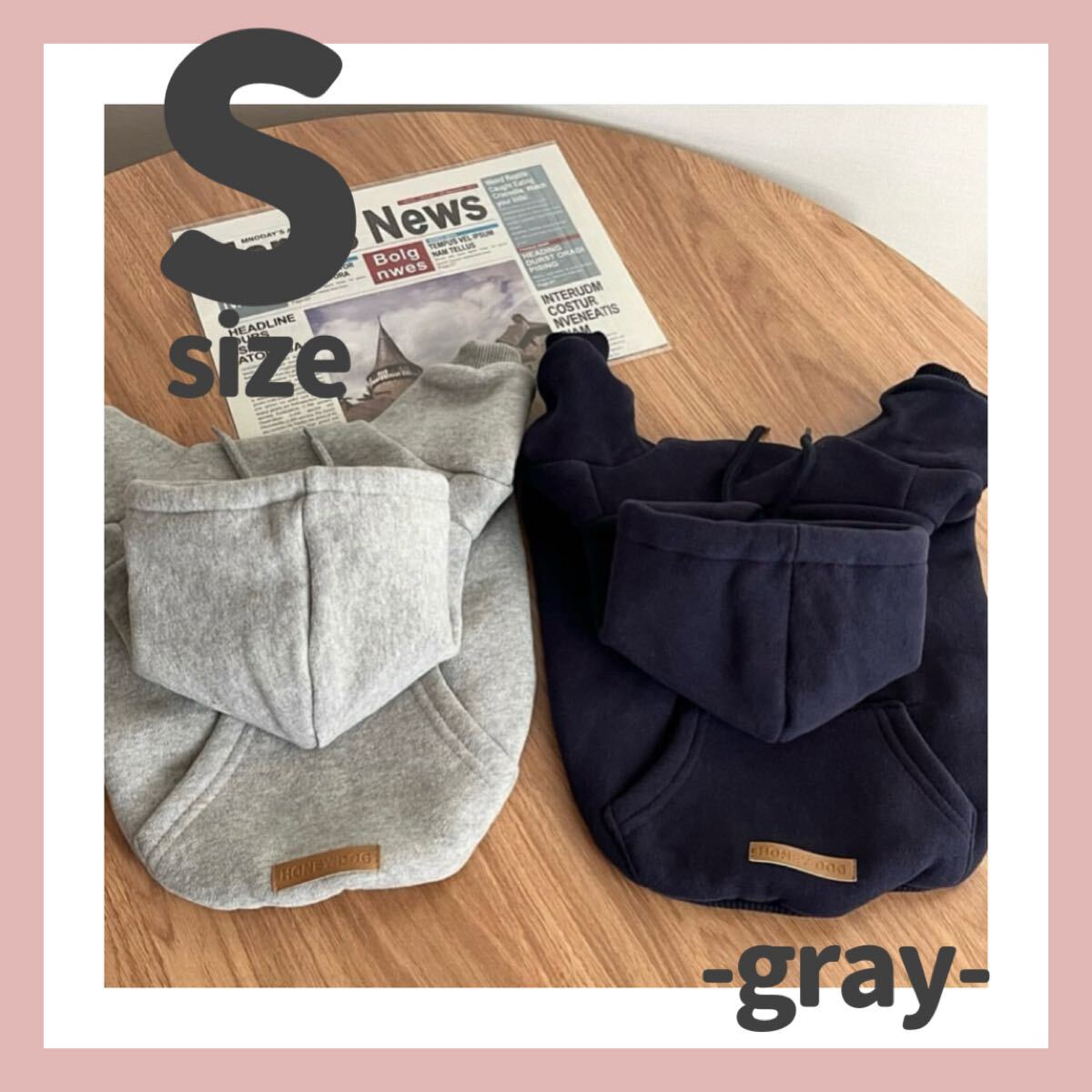 - 犬服 犬の服 ドッグウェア トレーナー パーカー 小型犬 S おしゃれ 裏起毛 可愛い シンプル グレー フーディー 秋冬