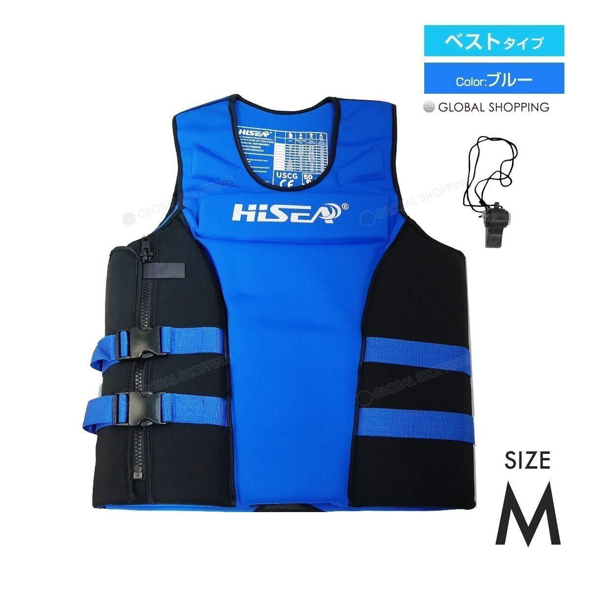 - フローティングベスト ライフジャケット 高品質 大人用 マリンスポーツ シュノーケル ジェットスキー 釣り 救命胴衣 ブルー Mサイズ