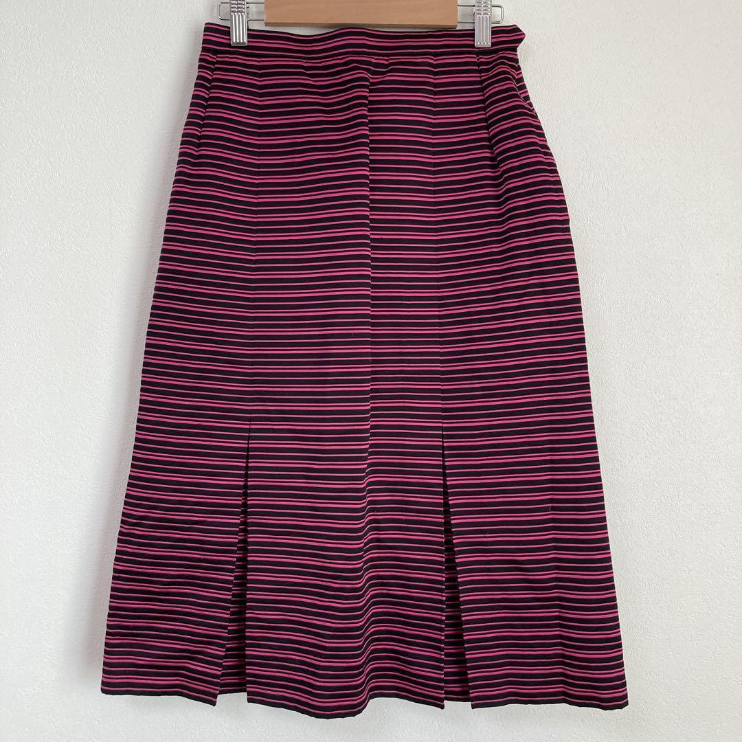 - 【美品】ボックスプリーツスカート(one)ボーダー柄*ひざ丈*マキシ丈*ガーリー