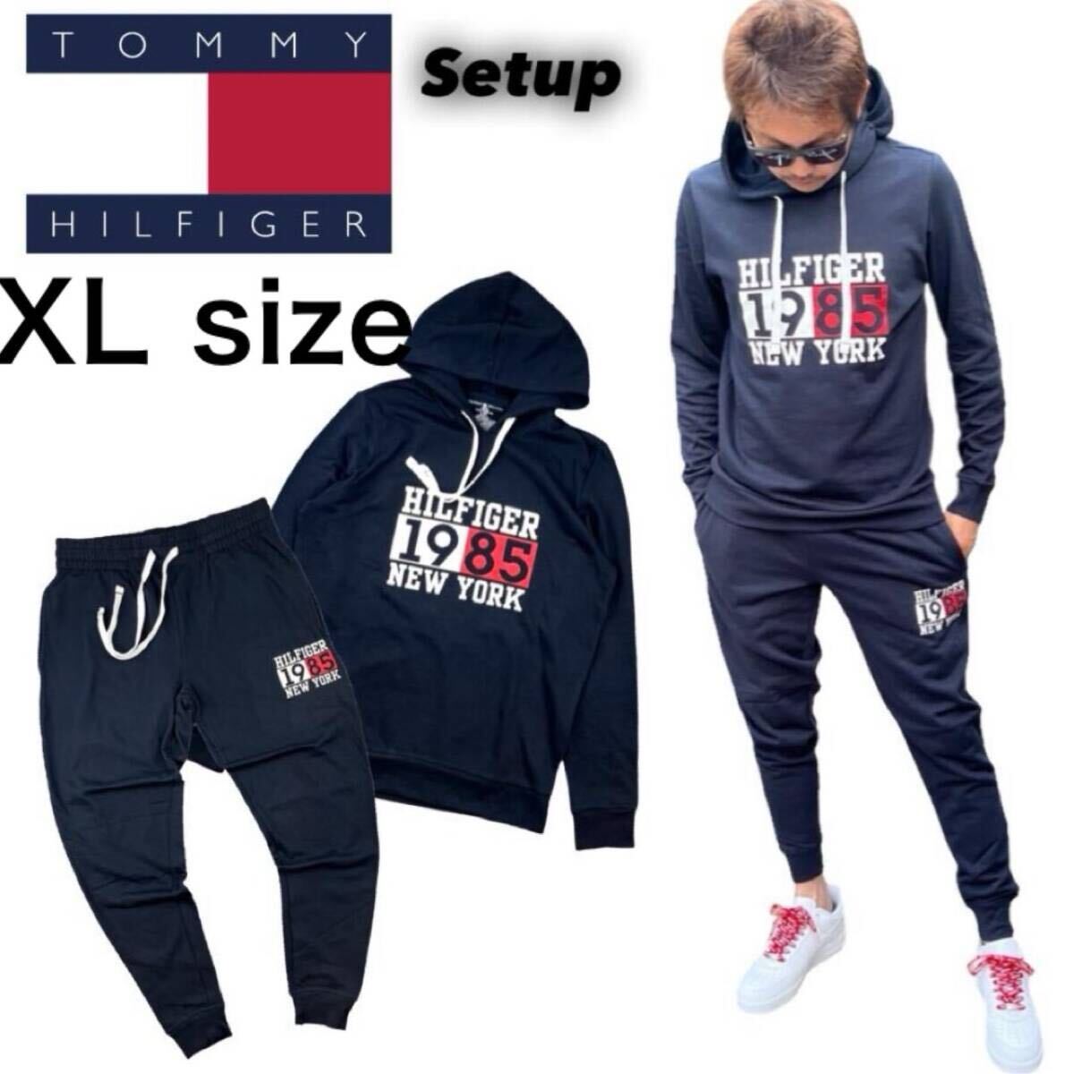 > トミーヒルフィガー セットアップ 上下セット 09T4457/4459 ネイビー XLサイズ 裏起毛 パーカー スウェット ジョガーパンツ 部屋着 新品