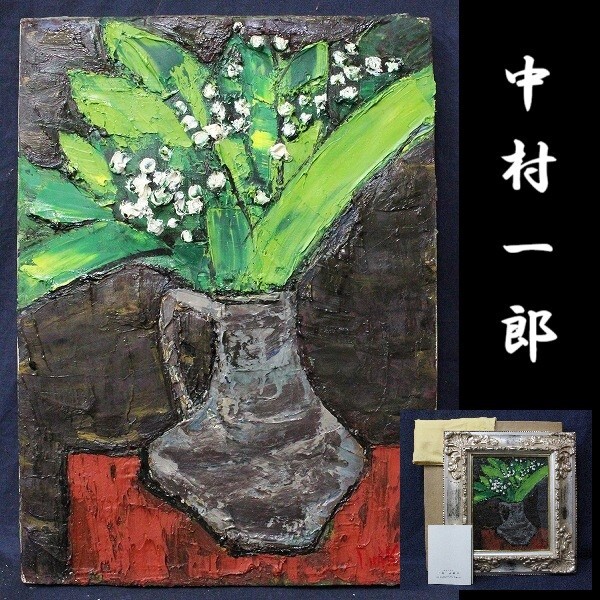 - 中村一郎 「スズラン」 油彩4号 静物画 岡山出身 迫力の厚塗り逸品 D948