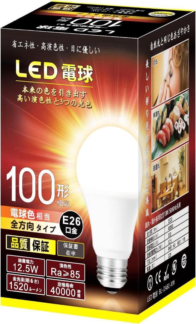 - LED電球 E26口金 直径26mm 100形相当 電球色相当(13W) 一般電