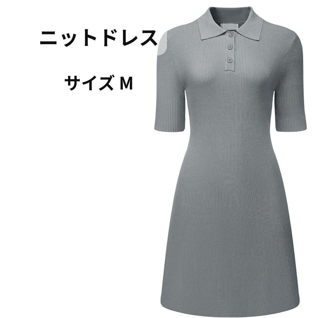- [Hobemty] ポロドレス 無地 半袖 ニット レディース M グレー