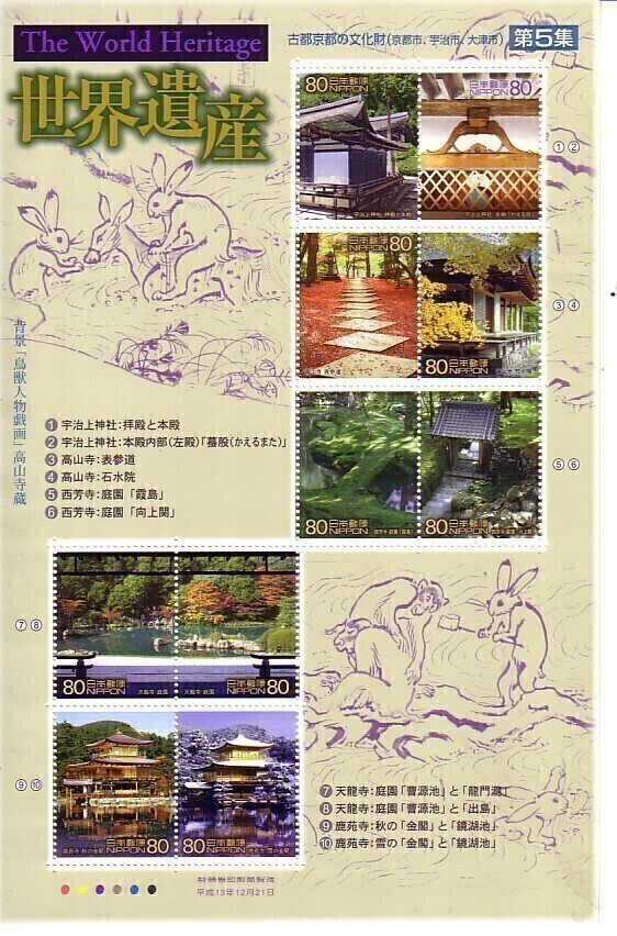 - 「世界遺産 第5集 古都京都の文化財」の記念切手です
