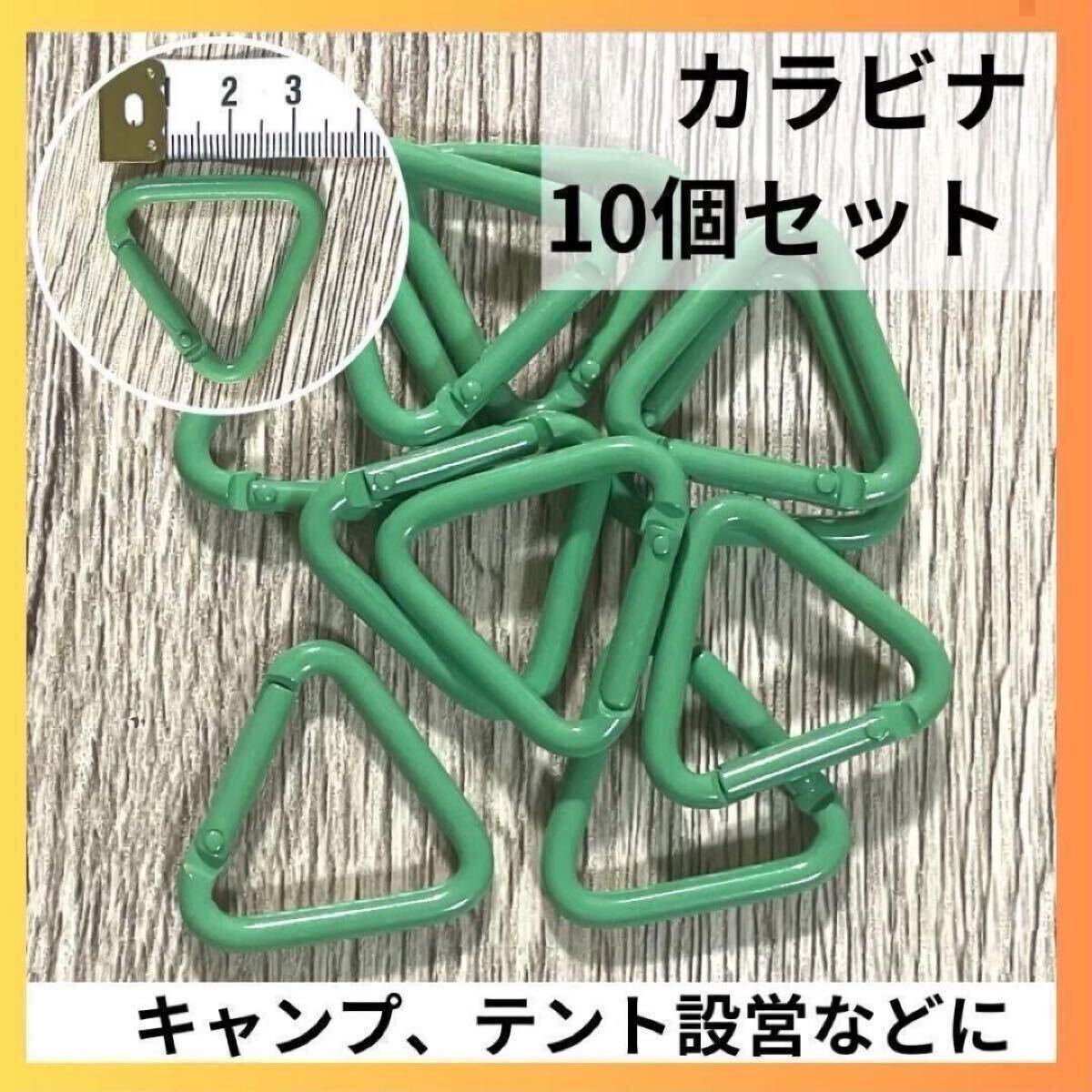 - カラビナ 三角 三角カラビナ 10こ テント タープ 設営 緑 グリーンキャンプ