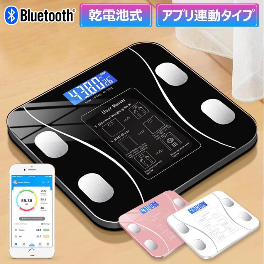 > 体脂肪計 体組成計 体重計 スマホ連動 乾電池式 体脂肪率 内臓脂肪 基礎代謝 強化ガラス デジタル Bluetooth iPhone Android 3色選択可