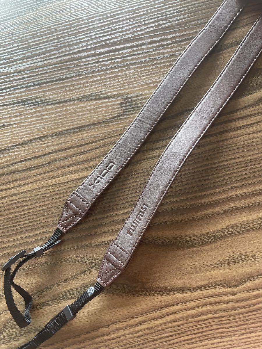 - FUJIFILM 富士フイルム X100 レザー ブラウン 茶色 純正 ストラップ 美品 本革 押し文字