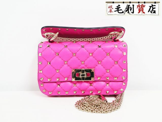 > ヴァレンティノガラヴァ―ニ VALENTINO GARAVANI ロックスタッズ スパイク チェーン ピンク レディース【中古】バッグ