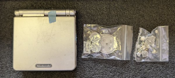 - 【USED】ゲームボーイアドバンス SP プラチナシルバー シェル 外装 交換用 ボタン・ゴム・ネジ等